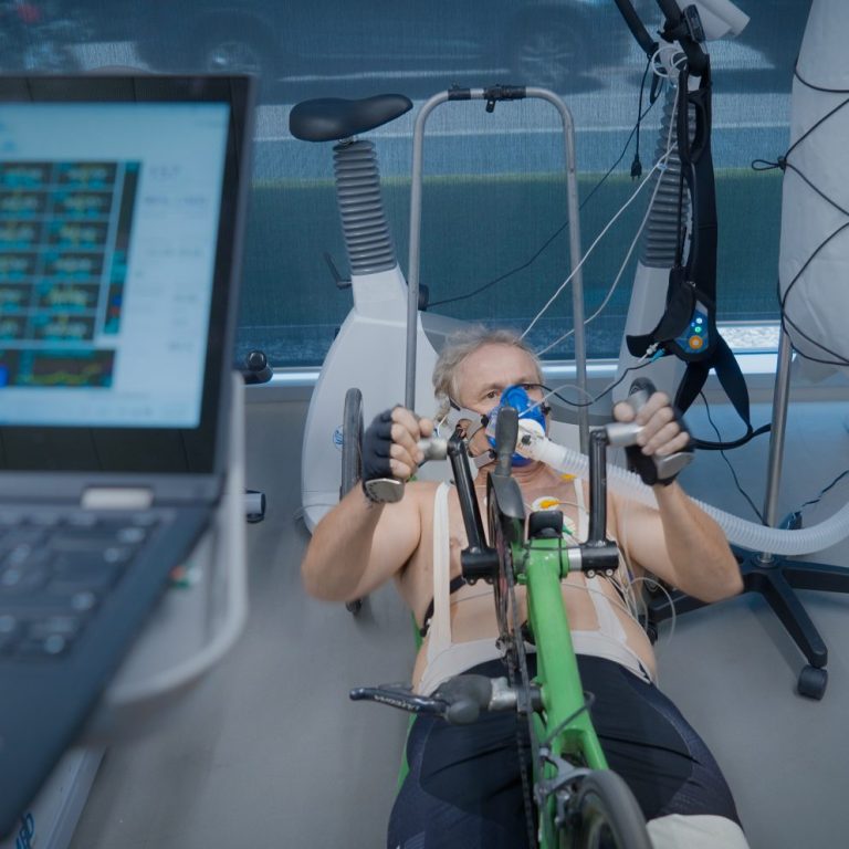 En el centro de investigación EURAC de Bolzano (Italia), Mireia Vicente junto al equipo de médicos realiza pruebas para analizar cómo responde el cuerpo de Mix en condiciones de altura, en un estudio científico pionero que amplía el conocimiento sobre la adaptación física en entornos extremos.